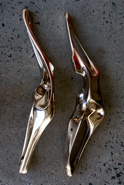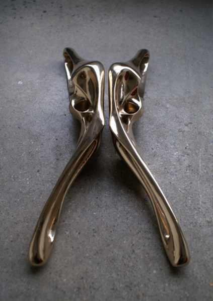 Commonwealth's 'Morfinas' could formally be characterized as expressions of delight in voluptuous form, and yet also they function simply as two door pulls when installed with their 3/8" screw attachments to a door. They are intended to be gripped, to be pulled, an above all else, to sensuously fit within the hand.