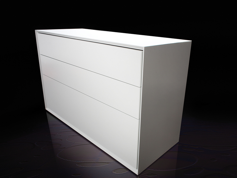 Materials: Medite (formaldehyde free MDF) and Richlite solid surface. Blum Hardware. Water based white lacquer paint finish.